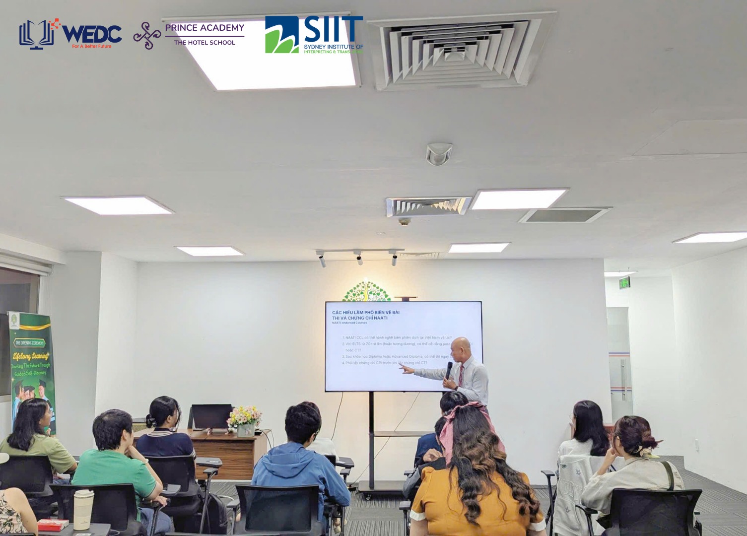On the evening of September 24, 2025, Prince Academy by WEDC successfully hosted the seminar "English - Vietnamese Interpreting & Translating Career Opportunities" in Ho Chi Minh City. The program attracted significant attention from students, language professionals, and individuals aspiring to develop a professional interpreting career.
